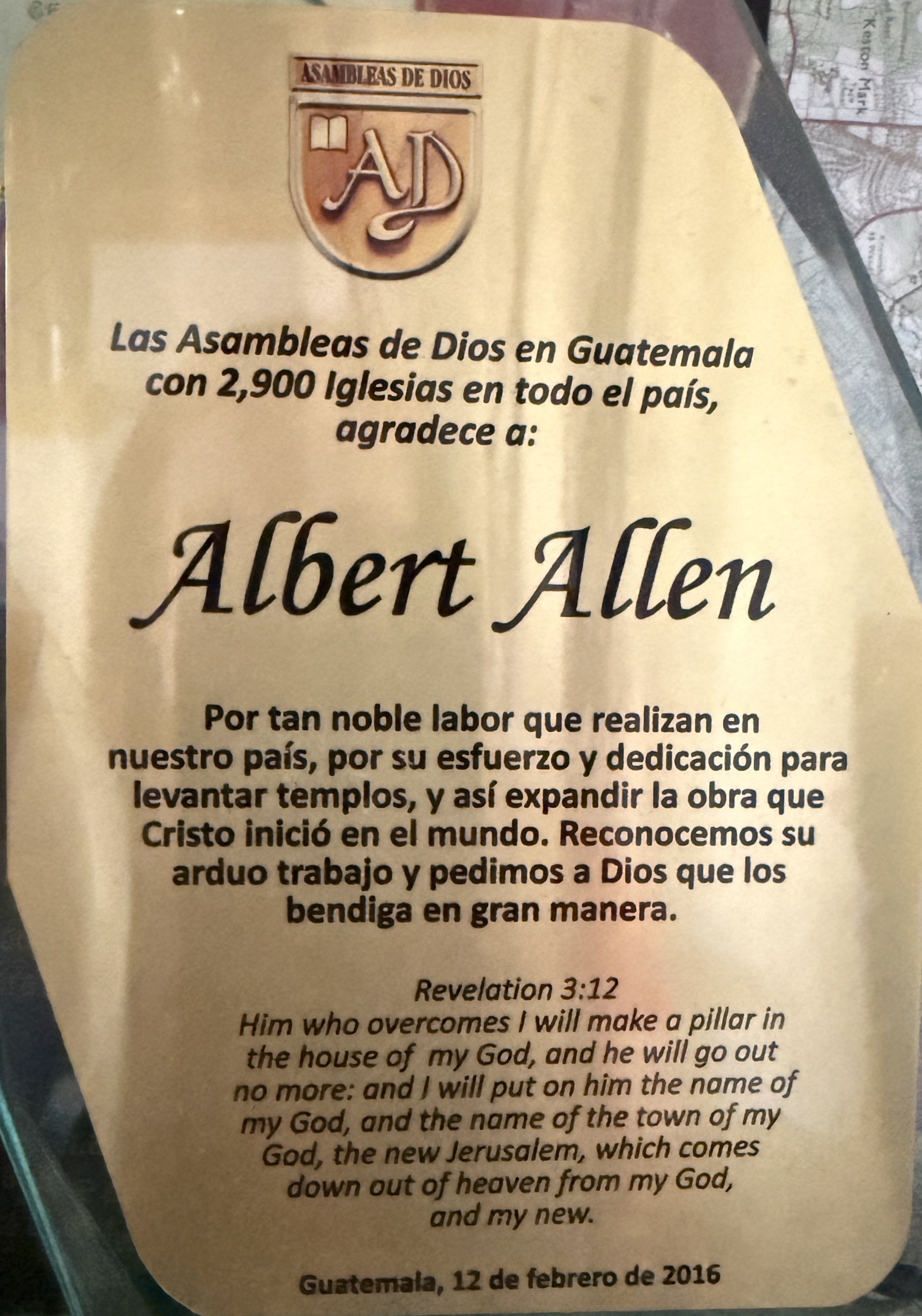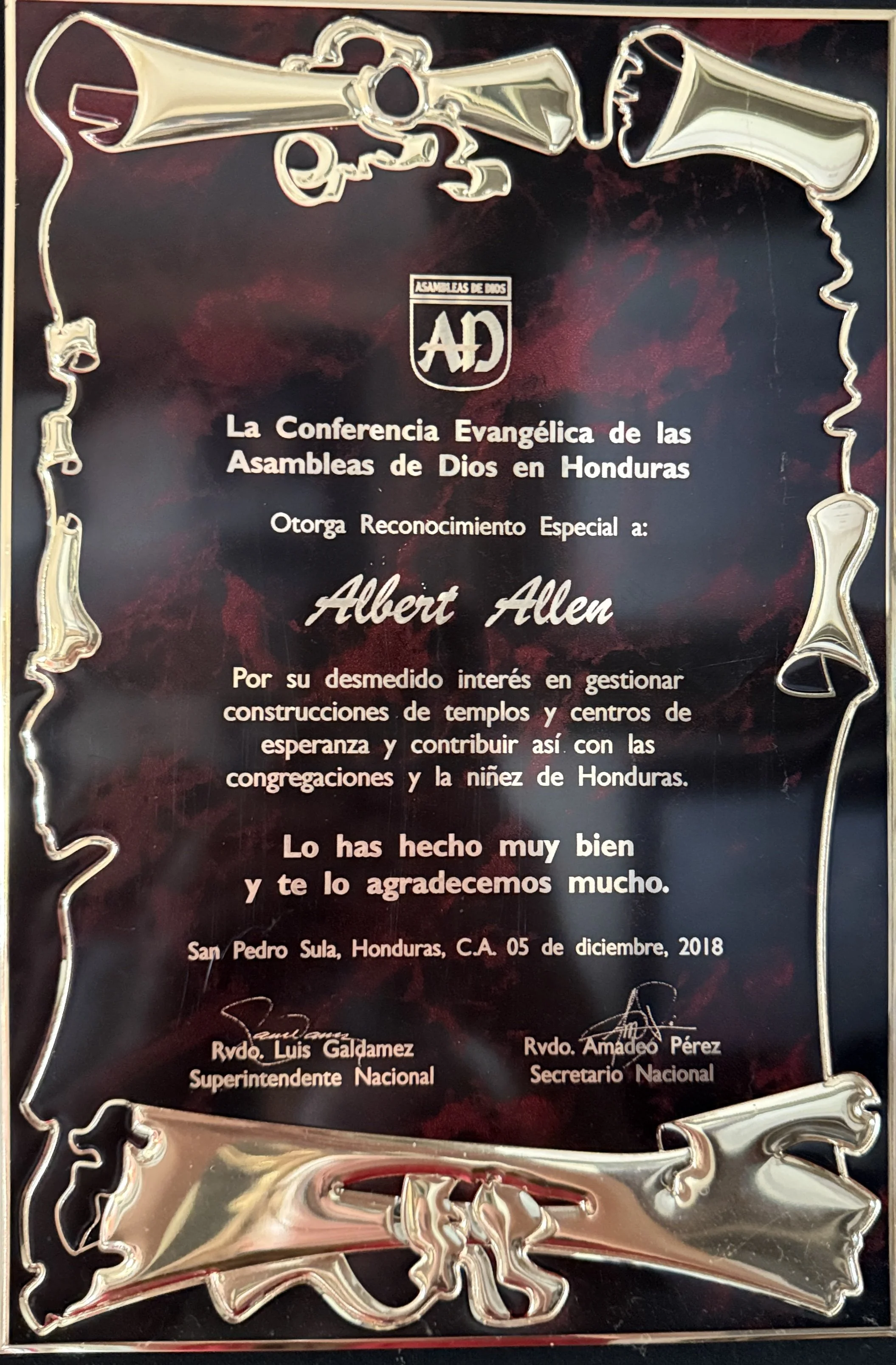 We extend our deepest gratitude to Albert Allen for the noble mission he carries out within our country. We honor his tireless effort and dedication to raising sanctuaries, thereby expanding the sacred work that Christ began in this world.